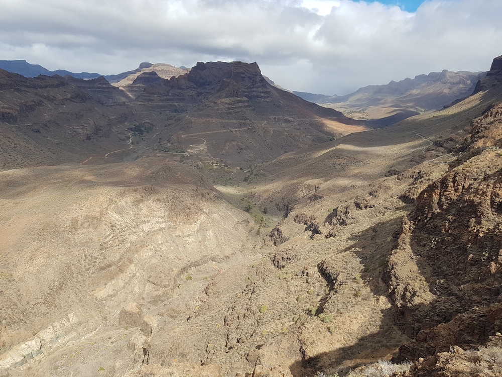 Blick von der Punta hinab ins Tal wo der Schotterweg zu sehen ist, den wir auf einer unserer späteren Touren hinab nahmen. Den weiteren Verlauf der Straße kann man rechts ebenfalls sehen.