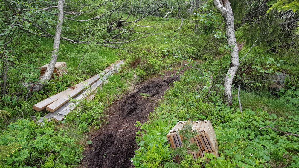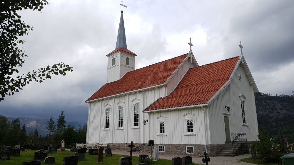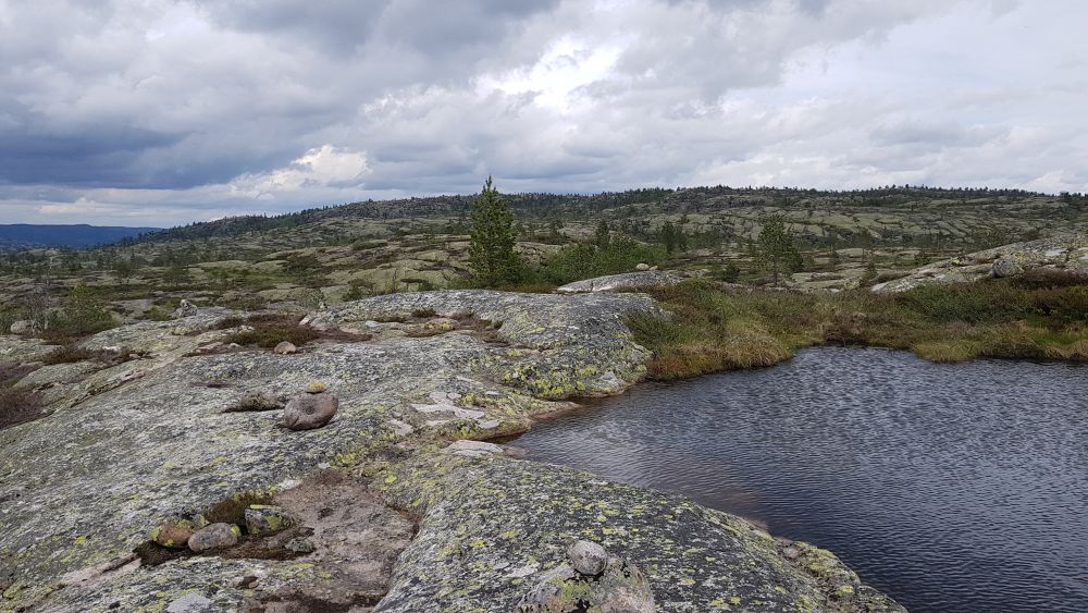 Also das zeitige Aufbrechen war auch am sechsten Tag nicht unseres. Wieder erst kurz nach halb 11 begaben wir uns zurück auf die Hochebene. Zunächst wieder vorbei an der Kirche von Treungen, deren neu geteerter Parkplatz nun begehbar war und weiter über einen Fahrweg der in Heimdal startete bis zum ersten markierten Mountainbikepfad, der uns weiter hinauf in die Seenlandschaft führte.