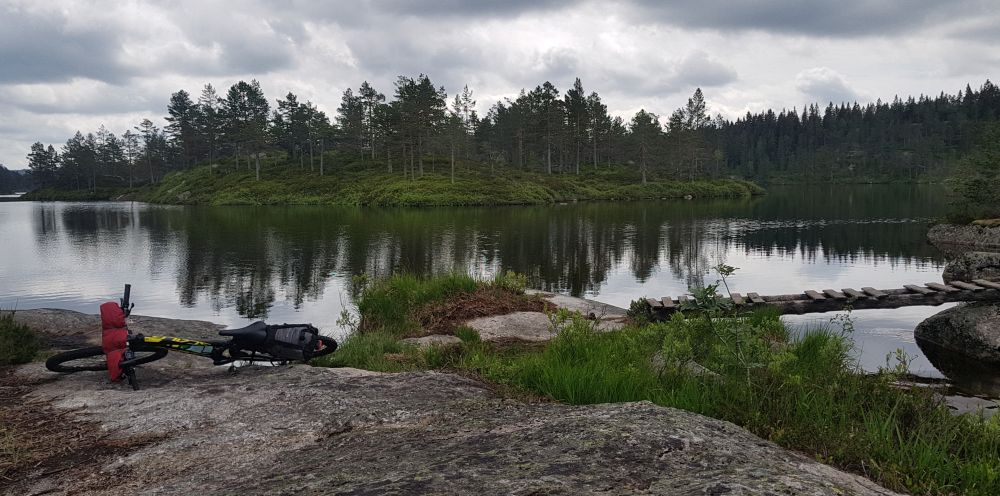 #7 Für den letzen Tag stand nur noch Straße auf dem Programm. Wir bemühten uns redlich und schafften es vor halb 9 aufzubrechen. Noch einmal überlegten wir eine Offroad-Variante zu nehmen, da wir aber nicht gründlich genug recherchiert hatten entschlossen wir uns diesmal für die sichere Variante der Straße, denn wir wollten die Fähre nur ungern verpassen. Gegen Mittag in einer Pause am Supermarkt von Herre buchten wir die Fähre von Langesund zurück nach Hirtshals, wo das Auto stand. Es waren herrliche Tage, die wir ohne Defekte, ich musste nur eins zweimal am Tag aufpumpen, oder andere Vorfälle hinter uns brachten und auch wenn wir manchmal vom Wetter getrieben wurden, sind wir bis auf eine Nacht ohne Regen durchgekommen. Nur die Mücken, die Mücken und ihre kleinen Freunde die Knots, von denen hatten wir am Ende genug und sind froh dass die Blutspende nun ein Ende hat. Es war eine spaßige Tour, vor allem auch mit Erkundungscharakter, was das Transportmittel Mountainbike angeht. Doch meist hatten wir ein glückliches Händchen in der Wegewahl, haben einige neue Insider?-Ecken entdeckt und die nächste Bike-Packing-Tour kann gerne kommen.