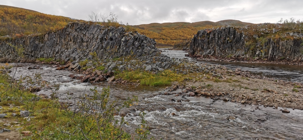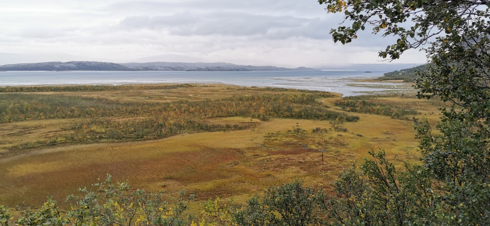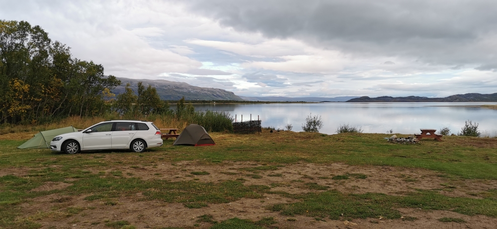 Uns gefiel die Landschaft nördlich von Alta sehr gut und sie es war hier wirklich herbstlich.Natürlich ging es auch wieder in die Beeren.Wir schauten nochmal in Skaidi vorbei, wo schon fast alles abgebaut war.Die Strecke war sehr gut ausgeschildert. Dennoch schaffte ich es mich zweimal zu verfahren 🙂 – ganz klar, ich hatte ja keine Karte dabei …… keine Karte, aber dennoch habe ich nen Posten gefunden, direkt an der MTB-Strecke.In Hammerfest befindet sich der nördlichste Punkt auf Stuve’s Meridianbogen. Friedrich Georg Wilhelm Struve konnte anhand geodätischer Vermessung nachweisen, dass die Erde keine Kugel sondern ein Ellipsoid ist. Als zu den Polen hin abgeflacht. Dazu wurde entlang des 27. Längengerades die Erde vom Schwarzen Meer bis nach Nordnorwegen vermessen.Blick auf eine Gasweiterverabeitungsanlage auf Melkøya bei Hammerfest. Hier wird das Gas aus einem Gasfeld gut 150 km vor der norwegischen Küste verabeitet und gleichzeitig wird CO2 abgespalten und wieder in das Gasfeld verpresst. Das Gasfeld vor der Küste (Snøhvit) kommt somit ohne eine permanente Bohrinsel aus.Die neue Kirche von Hammerfest, erbaut nach dem zweiten Weltkrieg.Die neue Kirche von Hammerfest von innen. Die neue Kirche von Hammerfest von innen.Die alte Kirche von Hammerfest, eines der wenigen Gebäude, das den zweiten Weltkrieg überlebt hat.Stabbursnes Naturschutzgebiet gut 20 km nördlich von Lakselv.Wieder ein Platz in Wassernähe. Nicht der beste Zeltplatz den wir hatten, aber schön gelegen.Mit tollem Blick vom Zelt aus.