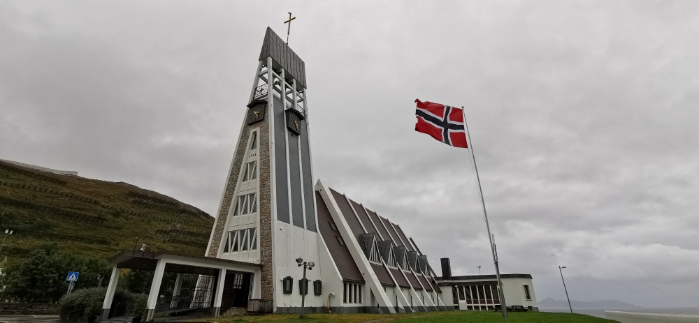 Wie angekündigt kam Regen auf. Wir holten noch kurz Geld in Alta um den Zeltplatz bezahlen zu können und warfen einen Blick auf die Kirche von Alta, ehe wir nochmal gen Norden aufbrachen. Hammerfest und Lakselv waren unsere Stationen. Eigentlich wollten wir nach Karasjok um am nächsten Tag unser Glück an der Norwegisch-Finischen Grenze zu probieren. Aber irgendwie verging der Tag auch so und wir zelteten nochmal am Meer in Lakselv.