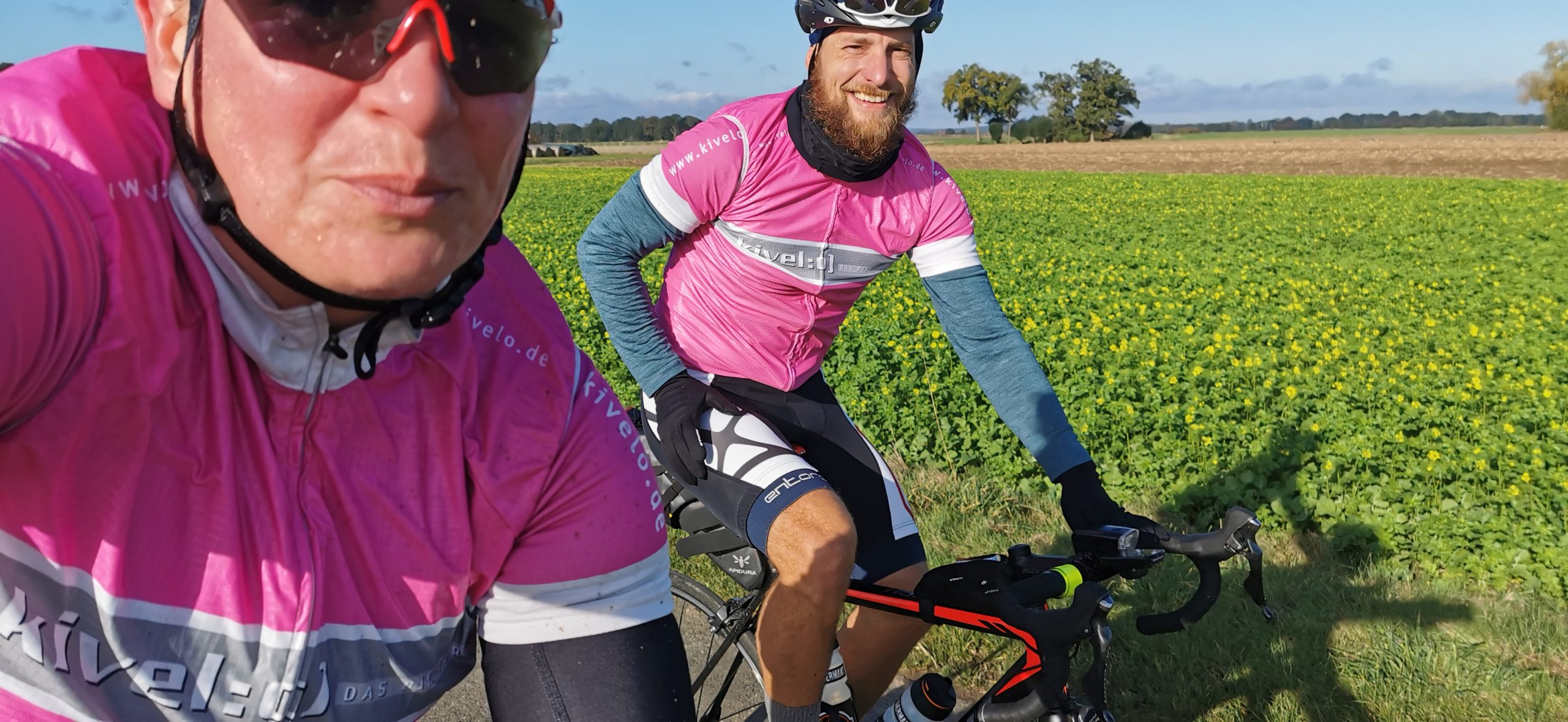 Diesmal kamen wir mit 10 min Stand-/Sitzzeit aus und begaben uns auf die letzten 60 km. Wir hatten zwar „nur noch“ einen 32er Schnitt, aber Christoph nahm die Gels gut an und blühte wieder auf, so dass wir weiter gut im Team arbeiten konnten. Es gab auch deutlich mehr Wälder und damit weniger Rückenwind. Gut 20 km vor dem Ziel schob ich noch ein Gel zu und sagte „als Heimbringer“ und danach verkroch ich mich in Christophs Windschatten 😉 . Irgendwie waren meine Beine jetzt breit. Ich weiß auch nicht warum ich mir im letzten Stopp nicht noch ne Banane für die Trikot-Tasche mitnahm.