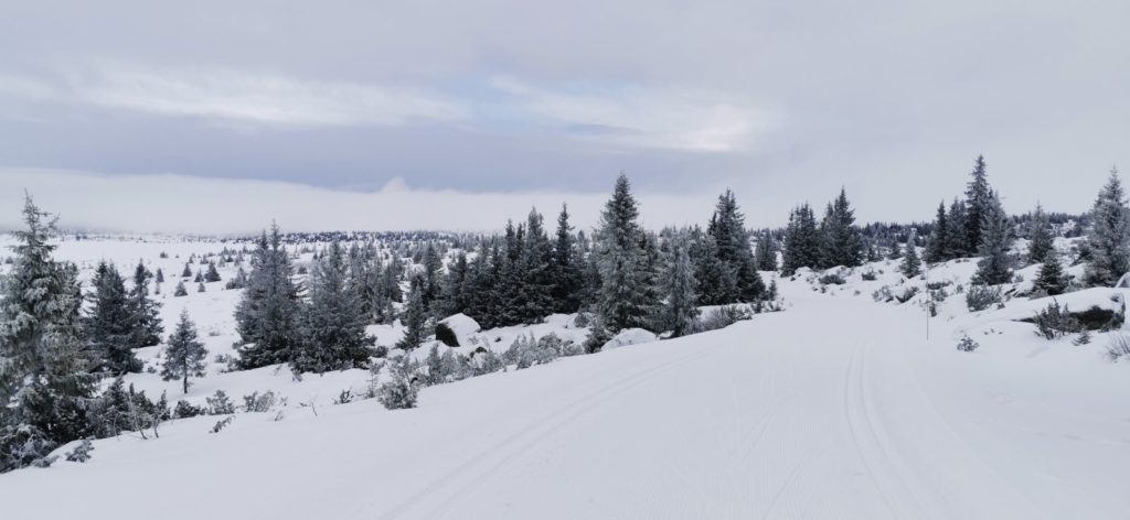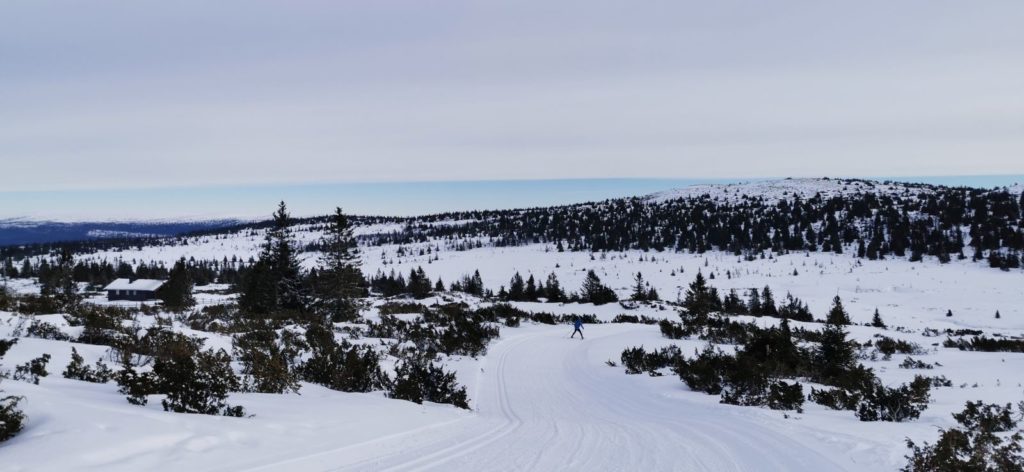 Die letzten zwei Tage vergingen in Windeseile und wir schrubbten nochmal einige Skating Kilometer durch die so herrliche Winterlandschaft Norwegens. Angeleitet waren unsere Touren von ein paar weiteren Ski-O Posten und Waffel mit Sahne und Marmelade. So liefen wir gestern eine nördliche Runde bis Pellestova und südlich durch zahlreiche Schneeverwehungen zurück. Die kleine Schlaufe fuhr ich noch extra um noch einen Posten zu holen, den wir durch zwei Orientierungsfehler immer sorgfältig verfehlten. Der morgen war neblig, zumindest am Haus, denn als wir die ersten Meter hinaufliefen klarte es langsam auf und es gab sogar blauen Himmel zu sehen. Der Wind fegte jedoch gewaltig über die Loipen.