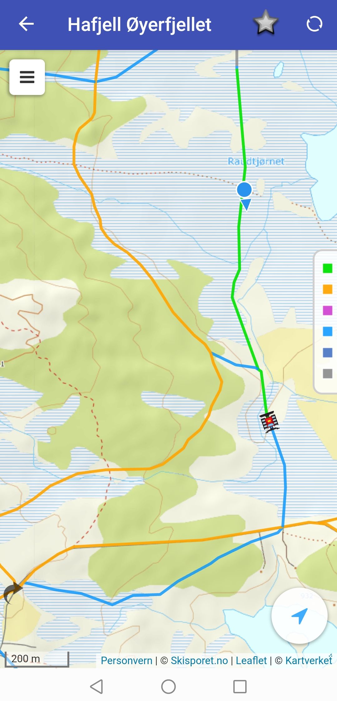Der Screenshot von Strava zeigt unsere Tour die uns über 37.5 km und 750 hm führte. Auch hier blieb ein verpasster Abzweig nicht aus, da waren wir in einer rasanten Abfahrt einfach zu schnell.Zum Planen unserer Touren haben wir neben der Papierloipenkarte auch das Angebot von skisporet.no genutzt, wozu es eine Handy-App gibt und man damit immer auf dem aktuellen Stand, da die Pistenbullys (schwarzer Käfer im Bild) mit GPS ausgestatt sind. Grün, Orange, Blau zeigen an, vor welcher Zeit das letzte Mail die Loipe aufgefahren wurde.