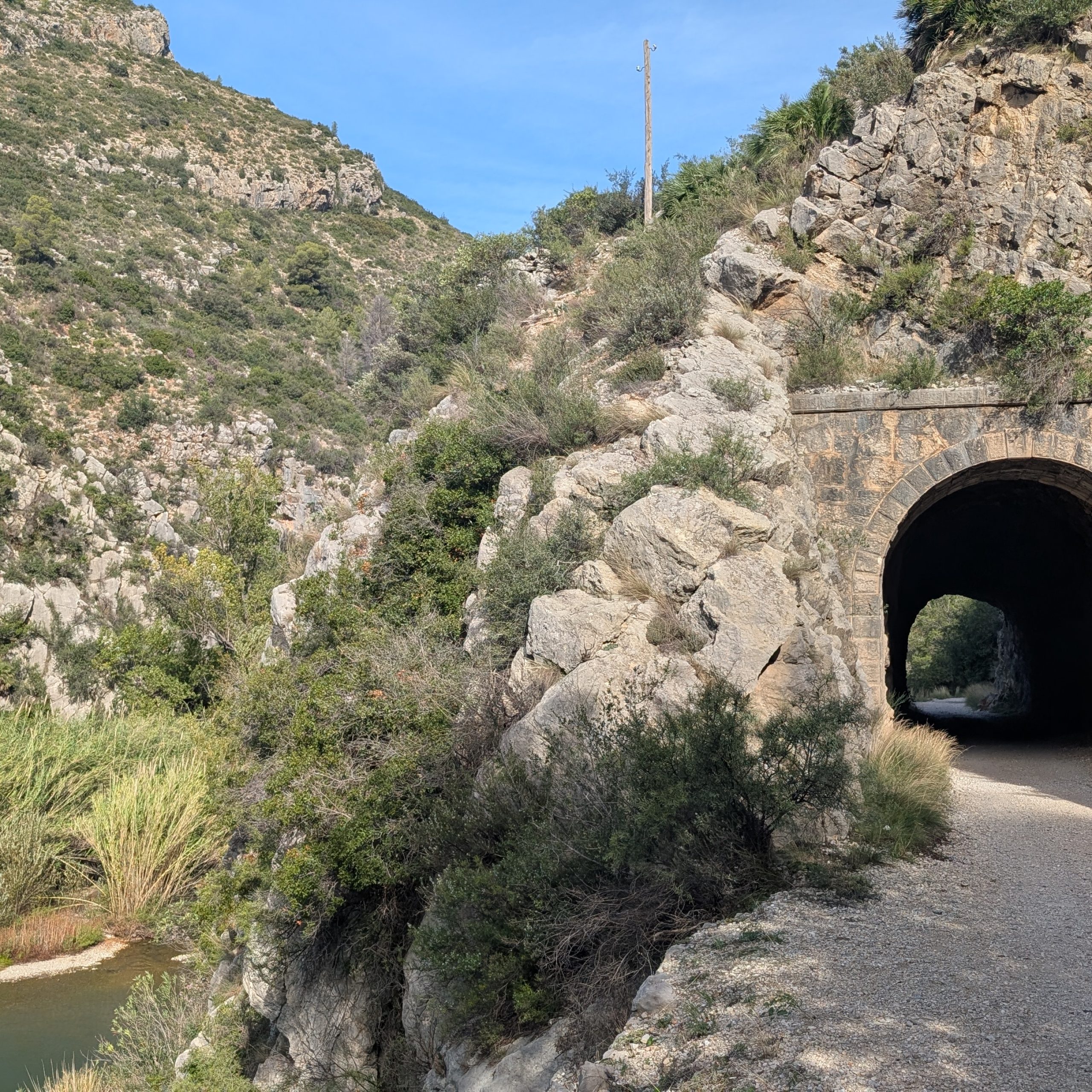 Auf Trails verlassen wir Gandia Richtung Westen. Bald gelangen wir auf eine ehemalige Eisenbahnstrecke, die uns sanft die ersten 400 hm klettern läßt. Ein paar Tunnel gilt es zu durchradeln. Nach einem kurzen Abstecher über einen Bergrücken, fahren wir in den Sonnenuntergang auf der ehemaligen Bahnstrecke bis fast direkt vor die Tür unserer ersten Unterkunft, die Villa Carmen, bei Bocairent. Etwas gezeichnet vom Tag und der Tatsache geschuldet dass montags viele Restaurants Ruhetag haben, freuen wir uns über den Lieferservice vom Dönermann.