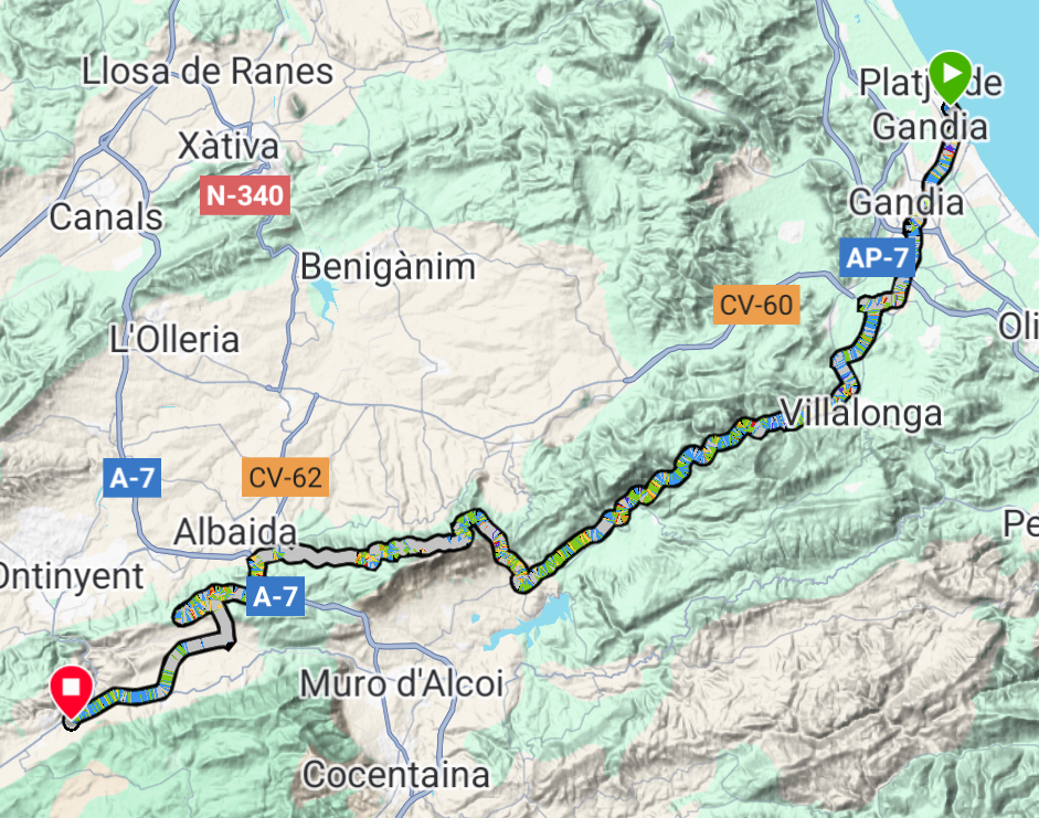 Tag 1: Gandia – Bocairent (76 km / 1435 hm)