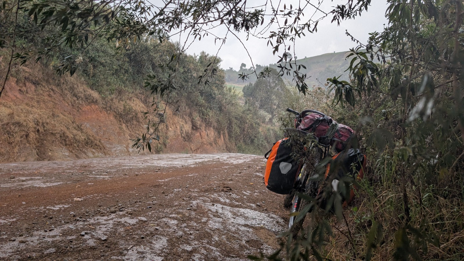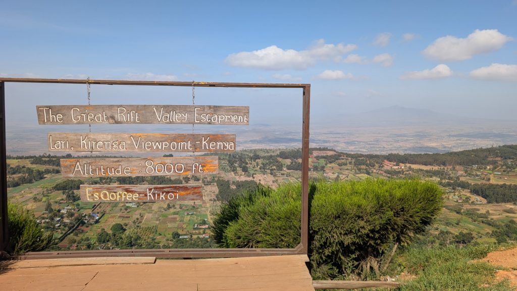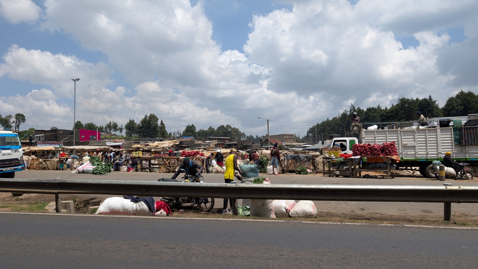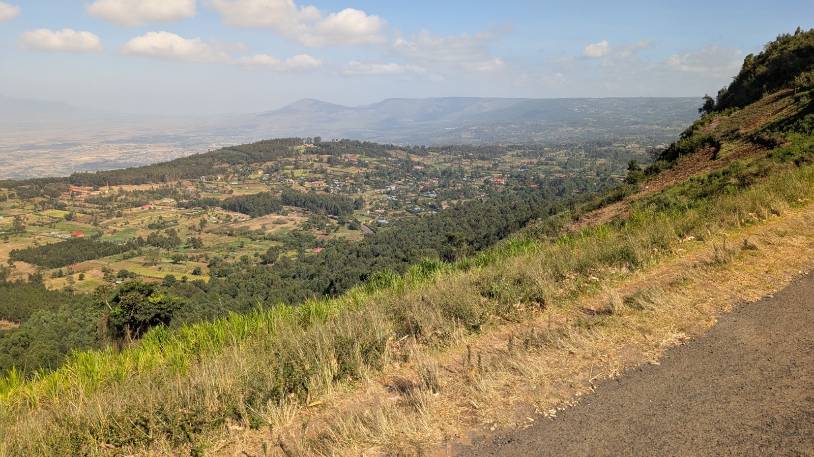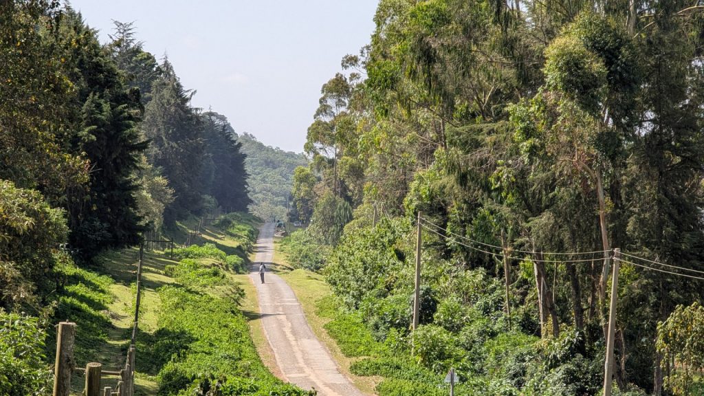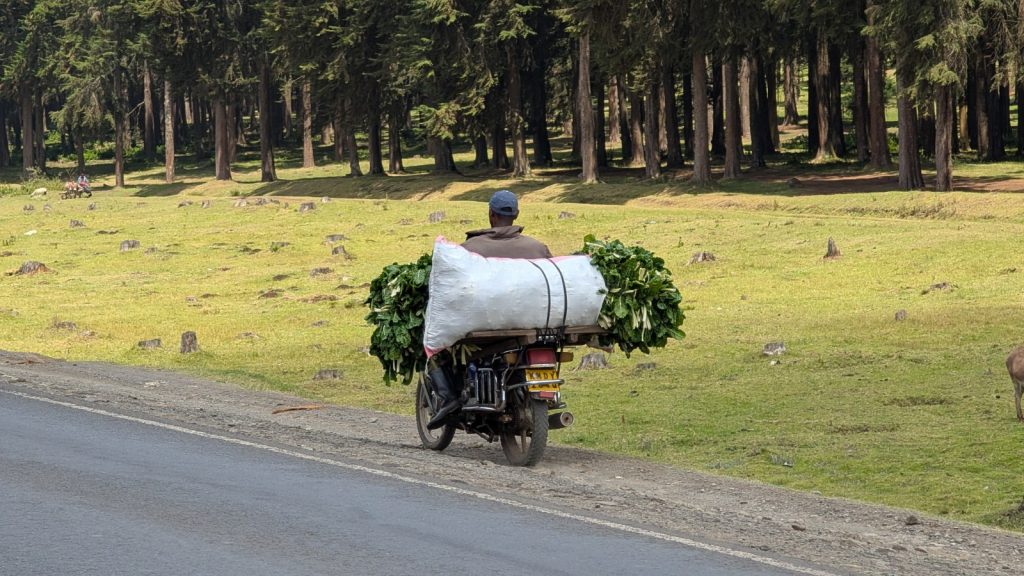 Schlussenddlich bogen wir an der Flyover Bridge der A104 ins Gelände ein. Zuvor stärkten wir uns allerdings im Imbis an einer Tankstelle mit Samosa und Pizza. In der folgenden Abfahrt sammelte Daniel ein paar herumliegendeä Kartoffeln auf und nur wenig später holte uns der bereits drohende Regen ein, den wir unter einem Busch aussaßen. Der Regen ließ langsam nach und so schlängelten wir uns über mehr oder weniger holprige Straßen an den Rand eines Vulkancraters. Entlang der Vulkanflanke führte ein schöner Singletrack. In der folgenden Abfahrt überholten wir einen LKW der sich mühevoll von Loch zu Loch schlich. Vorbei an Longonot führte uns der Weg durch die Kedong Range. Wir erblickten unsere ersten Garzellen, einen Büffel und Zebras, allerdings waren sie ja auf der Range eingesperrt. Auf teils recht sandigen Wegen ging es hinab und mit der Abenddämmerung erreichten wir den Naiwasha-See wo wir im YMCA mit unseren Zelten Unterschlupf fanden. Wir kochten mit unserer Gaskartusche Nudeln und Trockenfutter.