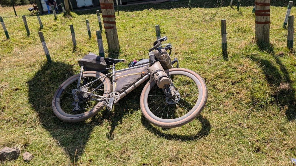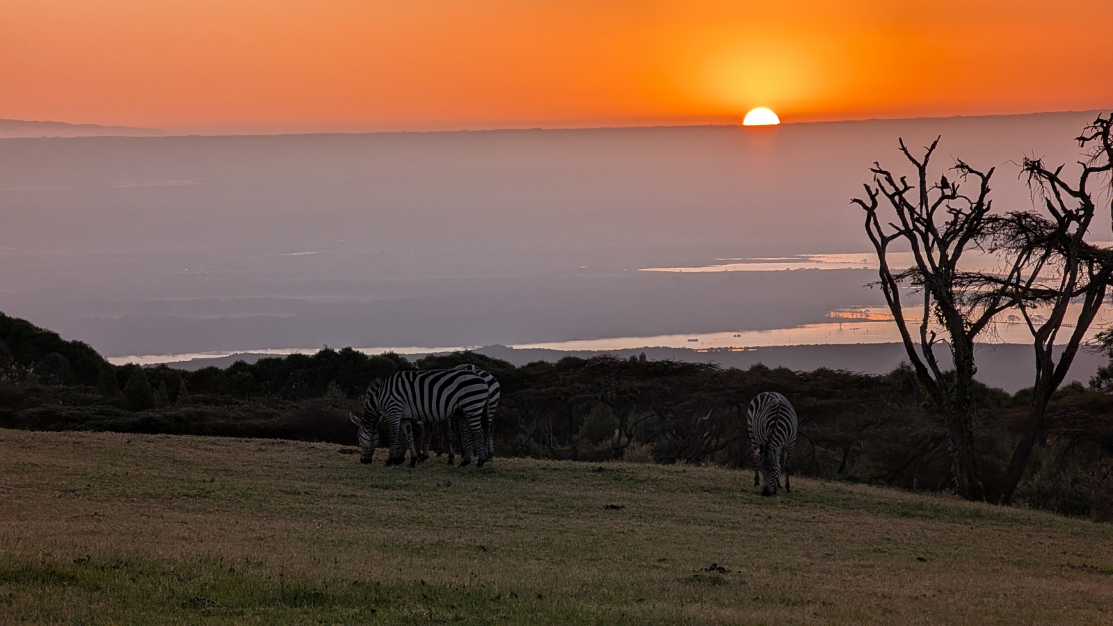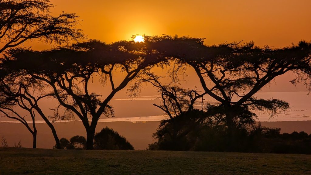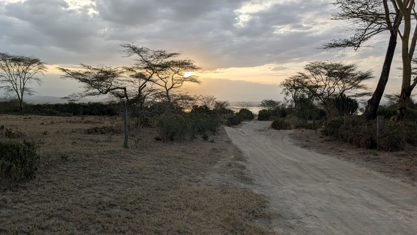 Damit der Gepäckträger nicht gleich ganz zerreisst, holperten wir langsam über die örtlichen Schotterstraßen und waren richtig froh eine Teerstraße in Kipkopey Gilgil zu erreichen. Kurz vor Einbruch der Dämmerung rollten wir den Fahrweg zu unserem anvisierten Zeltplatz am Elementaite See hinab. Wir waren zuversichtlich am nächsten Tag den Gepäckträger in der gerade passierten Stadt reparieren lassen zu können. Der Eigentümer half Daniel die Leute ranzuholen, die seinen Gepäckträger sogar noch am selben Abend reparierten. Doch das Aluminium stellte eine kleine Herausforderung dar. Ganz nebenbei war der Chef auch ein hervorragender Koch. Wir gönnten uns Nudeln mit Fleischbällchen und Salat. Kurz bevor es dunkel wurde erspäten wir noch die Flamingos unterhalb des Zeltplatzes, konnten aber nicht hin, da es ein Naturschutzgebiet ist und man Eintritt zahlen musste.