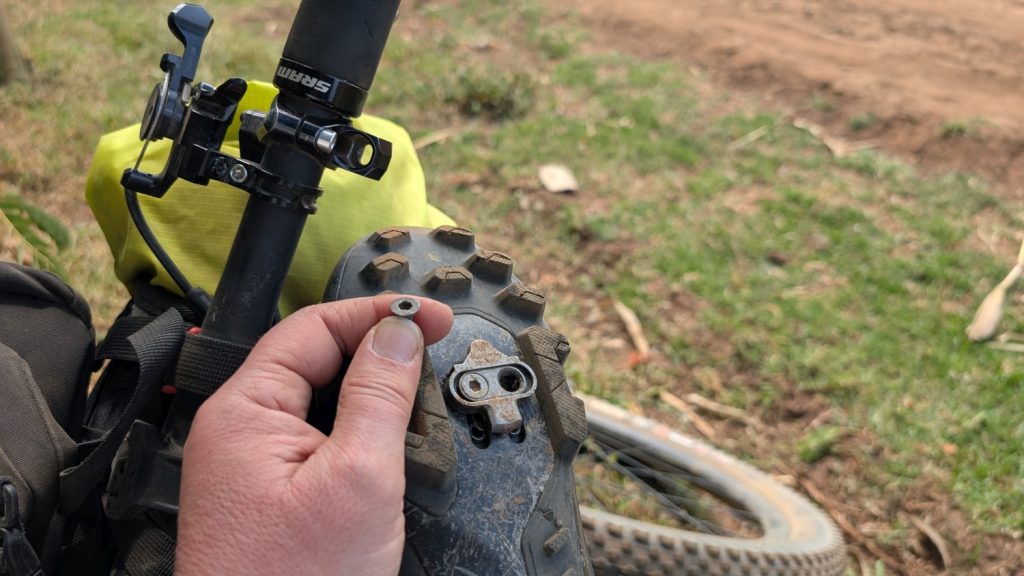 Irgendwann mussten wir unseren Weg fortsetzen, so schwangen wir uns wieder in die Sättel. Dass es den Menschen in der Kommune besser geht konnte man neben der befestigten Straße auch daran sehen, dass mehr und gar nicht ganz schlechte Autos fuhren und die Wasserkanister nicht selbst getragen wurden sondern mindestens ein Esel dafür benutzt wurde oder es gleich einen Bestellservice zu geben schien. Brot wurde auch ausgeliefert und der ein oder andere Autofahrer grüßte uns und feuerte uns an während wir uns den Berg aufi mühten. Wir erreichten eine Art kleines Plateau, auf dem uns unterschiedliche recht gut befahrbare Wege durch eine Felder- und Farmlandschaft führten. Nach einer Weile stellte ich fest, dass sich eine Schraube an meinem Schuh gelöst hatte und leider war sie auch nichtmehr am Schuh. Ich unternahm einen Versuch die Schraube auf dem letzten Kilometer zu finden. War das fluffig zu fahren so ohne Gepäck. Aber irgendwann vermutete ich, dass die Schraube schon vor meinem letzten Fotostop aus dem Schuh gefallen war. Ich überlegte wie ich das Schraubenproblem beheben könnte und ging sämtliche Schrauben am Bike gedanklich durch. Ich entschied mich dazu die Schraube aus dem Hebel meiner absenkbaren Sattelstütze zu nehmen, bis ich entdeckte und mir einfiel, dass der Schalthebel mit einer falschen Schraube montiert war, die hatte ich nämlich irgendwann mal da reingeschraubt, als die originale Schraube verloren ging. Könnt ihr noch folgen? Naja, lange Rede kurzer Sinn, ich hatte zufällig die passende Schraube für den Schuh am Rad und konnte sie im Schuh ersetzen. Ich baute die Schraube vom Sattelstützen-Lockout auf den Schalthebel um und steckte den Sattelstützen-Hebel ins Trikot, denn der funktionierte über Funk. Problem gelöst und ich dachte ich sollte dann einfach jeden Morgen einmal schauen ob die Schrauben im Schuh noch fest sitzen, weil sie sich vermutlich durch das viele Gehen immer mal wieder lösen. Doof, dass ich bei der Suche der Schraube meine Sonnenbrille verloren hatte. So bin ich den Kilometer noch einmal zurück gedackelt, aber die Brille war nichtmehr auffindbar, hatte sicher schon einen neuen stolzen Eigentümer gefunden.
